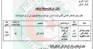 - إعلان عن مسابقات توظيف بالمجلس الشعبي البلدي