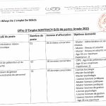 | 01 | عامل مهني من المستوى الأول بالتوقيت الكامل | 01 | على أساس الإختيار المهني | لياقة بدنية تتماشى والنشاط الواجب ممارسته. |