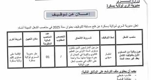 - اعلان عن مسابقة توظيف بمديرية الري 2025