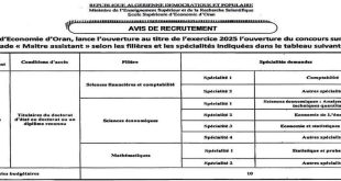 إعلان عن فتح مسابقة على أساس الشهادات للالتحاق برتبة أستاذ مساعد قسم “ب” بعنوان سنة 2025