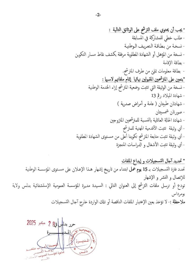 تعلن المؤسسة العمومية الاستشفائية بدلس عن فتح مسابقة توظيف في الرتب المهنية أدناه: