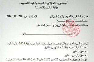 أكمل القراءة »اعلان هام… جديد مسابقة بريد الجزائر 2025