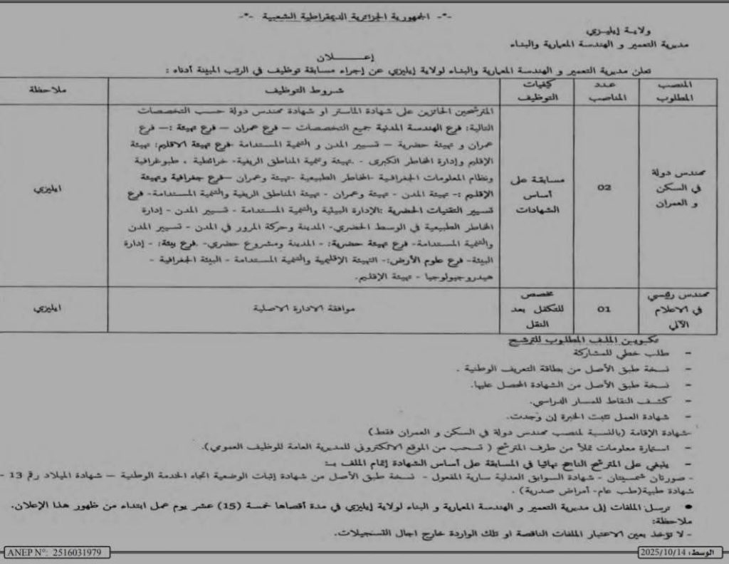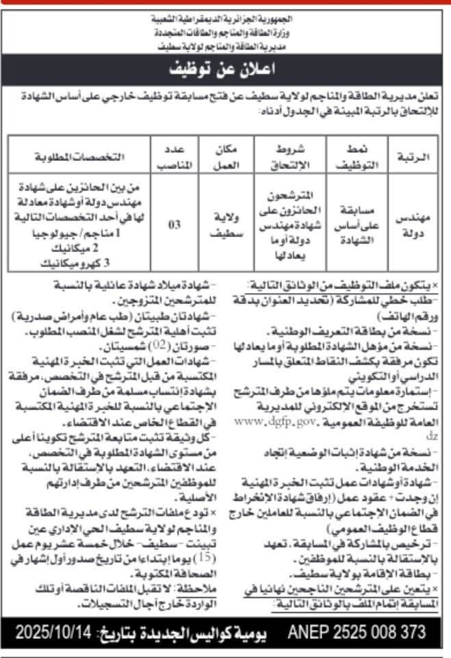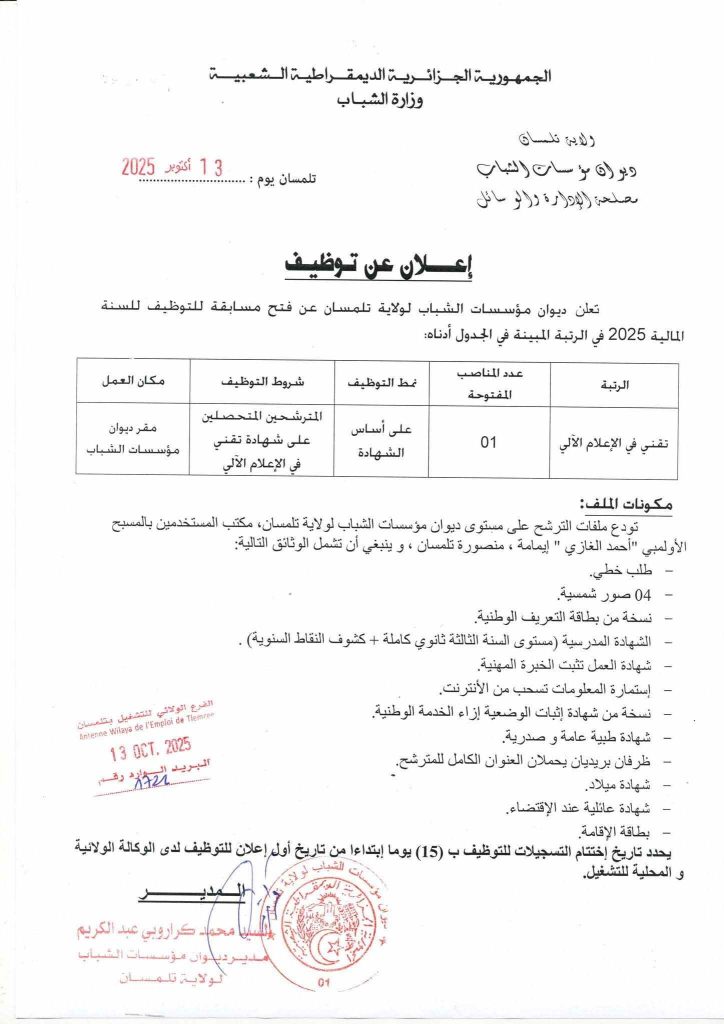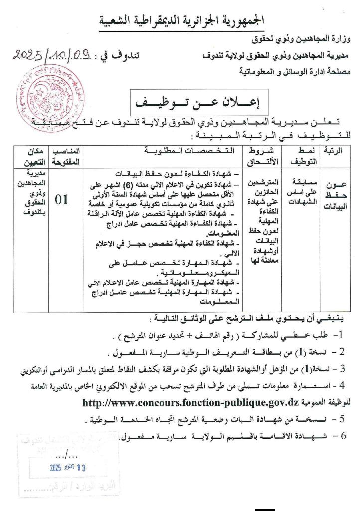اعلانات توظيف جديدة في ولاية: بومرداس، سطيف، ايليزي، تلمسان، معسكر وتندوف