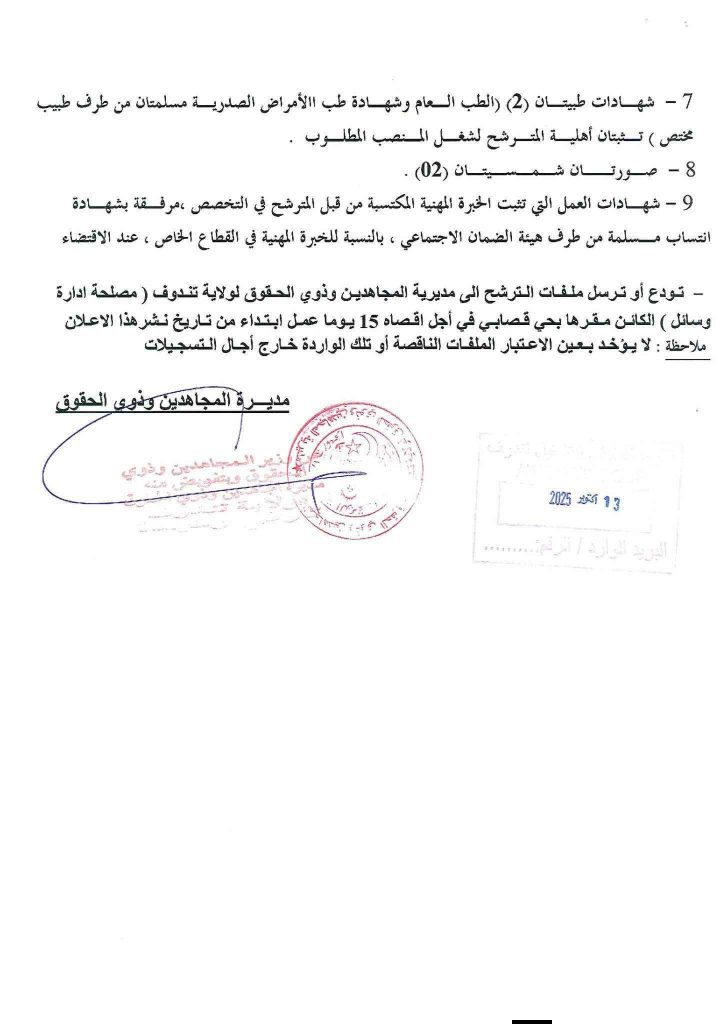 يرجى من المهتمين التقرب من الادارة المعنية بالعرض او الملحقة المحلية للتشغيل حسب طبيعة الاعلان