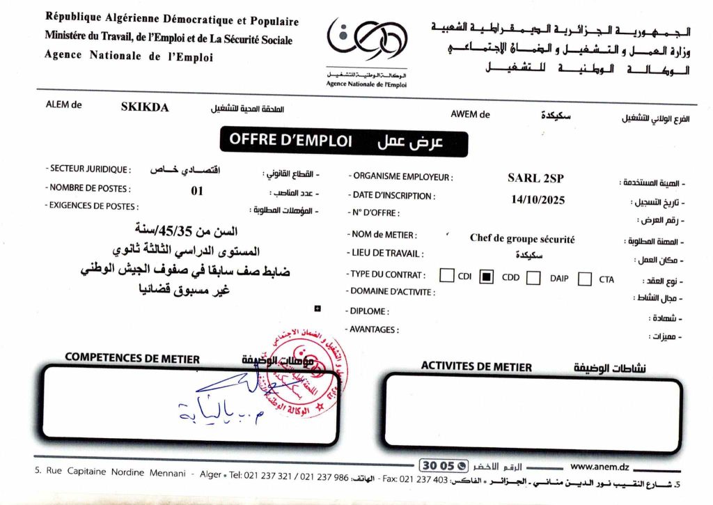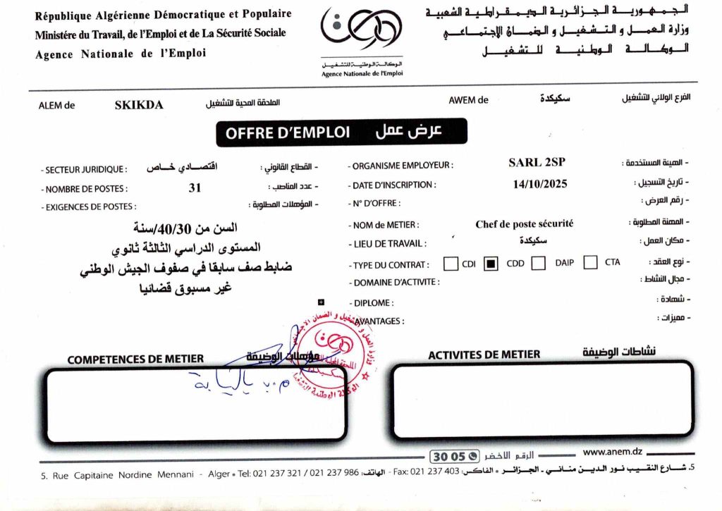 - اعلان توظف بشركة الأمن و الحماية 2SP في عدة مناصب: