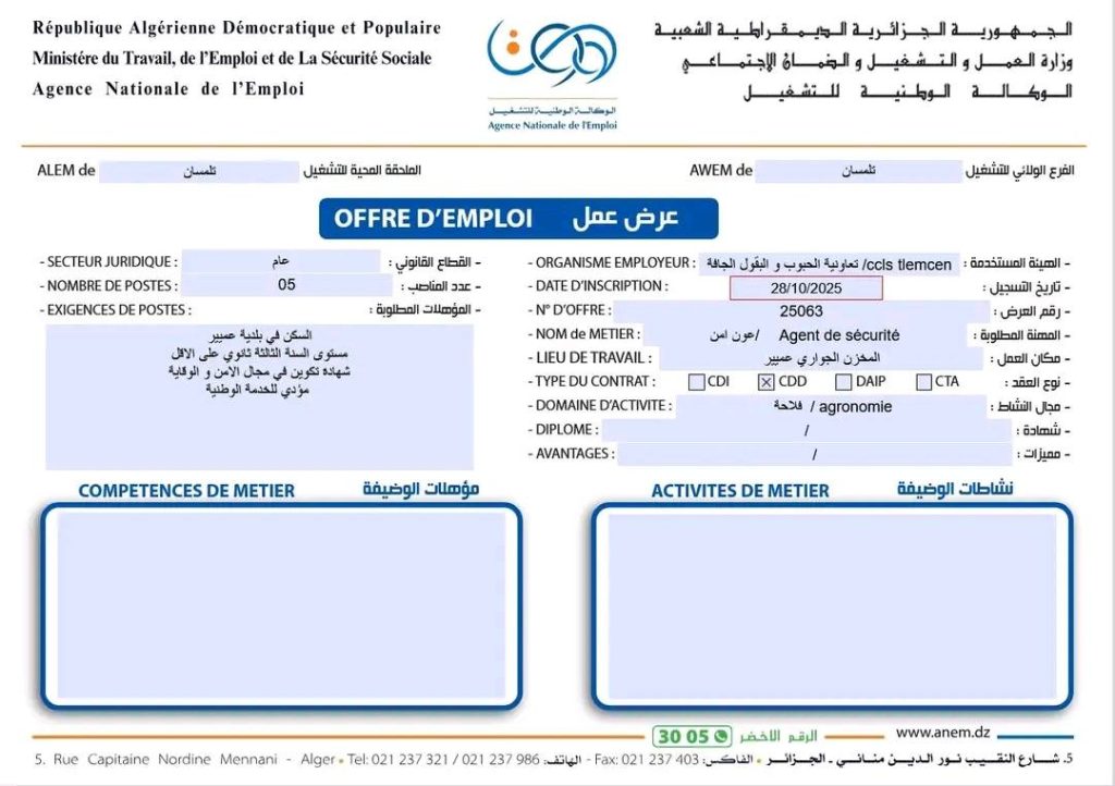 اعلان توظيف أعوان أمن بتعاونية الحبوب و البقول الجافة