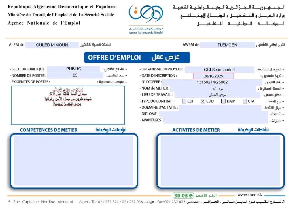 الهيئة المستخدمة: تعاونية الحبوب و البقول الجافة