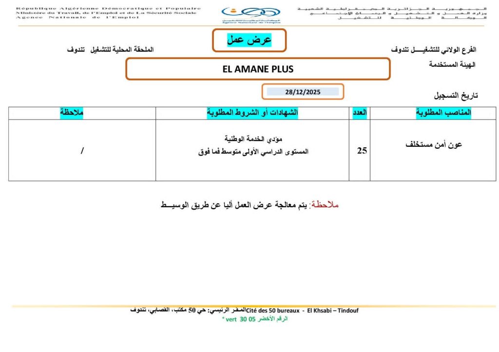 - اعلان توظيف أعوان أمن بمؤسسة EL AMANE PLUS