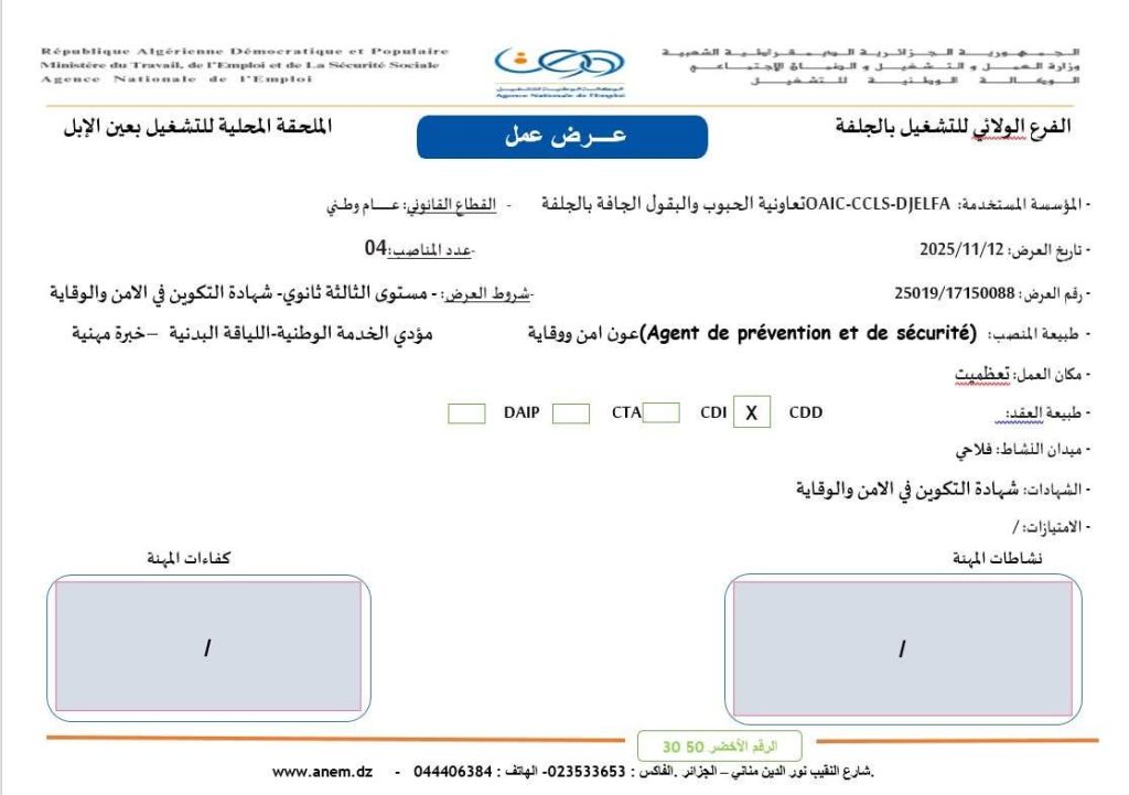 المؤسسة المستخدمة: المؤسسة العمومية للحبوب والبقول الجافة بالجلفة