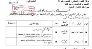 آخر أجل لوضع الملفات : بعد 15 يوم من تاريخ النشر
