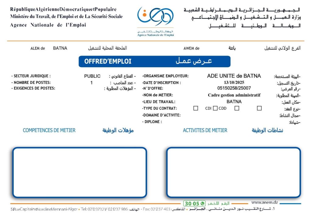 الهيئة المستخدمة: ADE UNITE DE BATNA