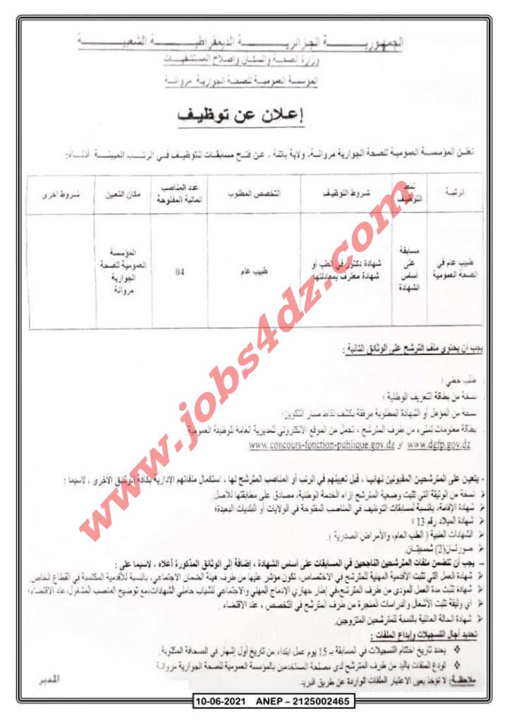 تعلن المؤسسة العمومية للصحة الجوارية مروانة ولاية باتنة عن فتح مسابقات للتوظيف في الرتب المبينة ادناه