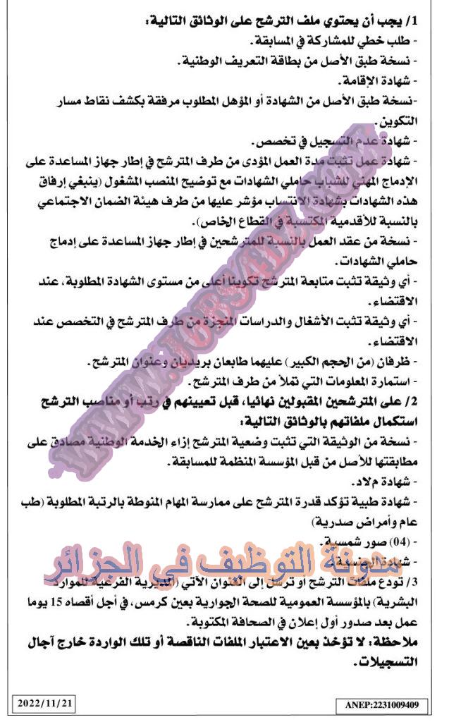 اعلان توظيف بالمؤسسة العمومية للصحة الجوارية بعين كرمس تيارت