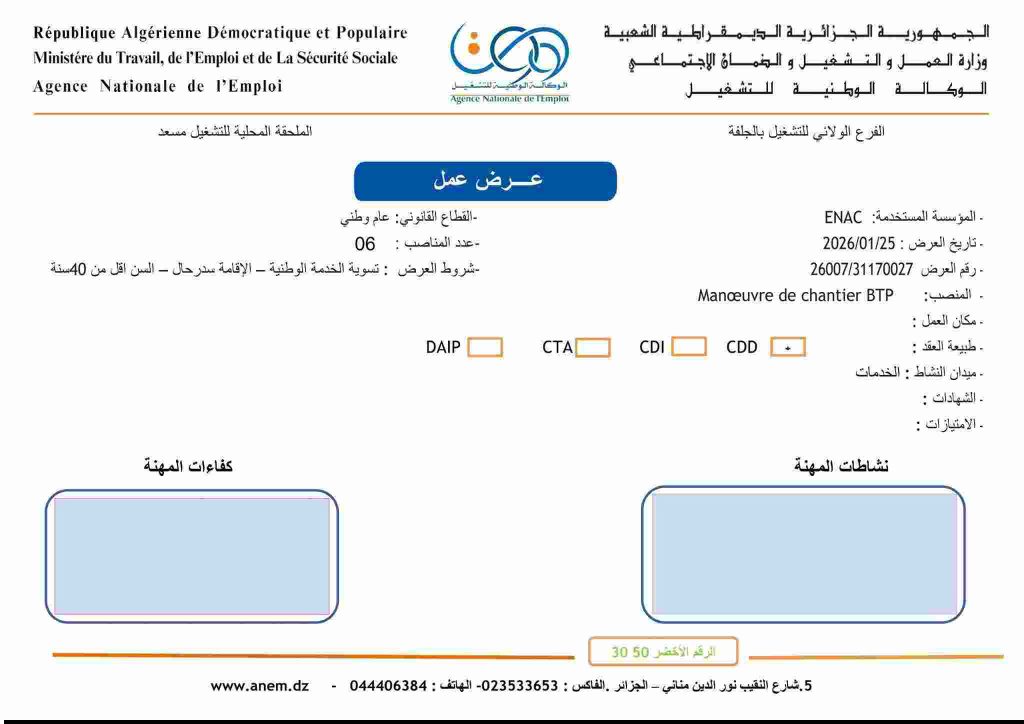 الفرع الولائي للتشغيل بالجلفة