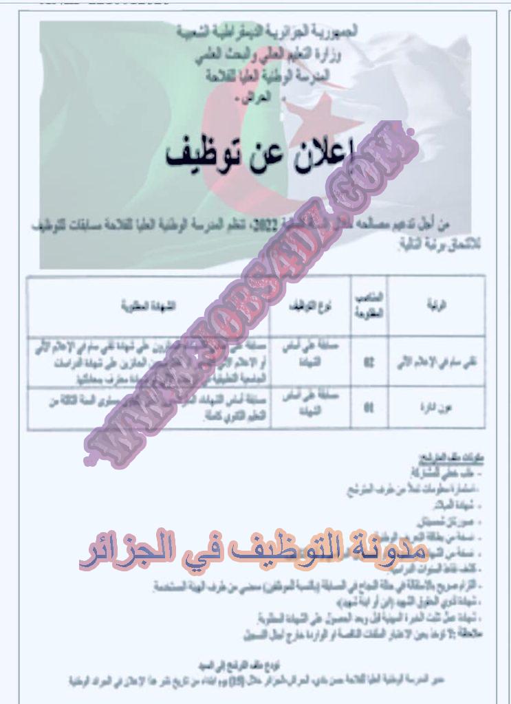 تعلن المدرسة الوطنية العليا للفلاحة الحراش عن فتح مسابقة توظيف على اساس الشهادة بعنوان السنة المالية 2022 في المناصب المبينة ادناه