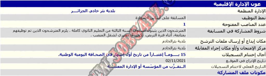 | مركز الإمتحان و/أو مكان إجراء المقابلة | بلدية بئرالخادم |