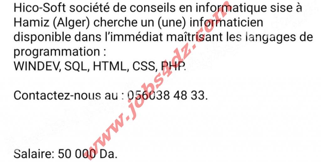 اعلان توظيف بشركة Hico-Soft بالحميز الدار البيضاء الجزائر العاصمة