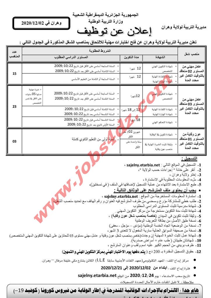 عامل مهني من المستوى 03 متعاقد بالتوقيت الكامل غير محدد المدة.- عدد المناصب 23 منصب