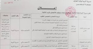يعلن مركز التكوين المهني والتمهين بمناصر ولاية تيبازة عن فتح مسابقة توظيف عن طريق الاختبار المهني في الرتب المبينة ادناه