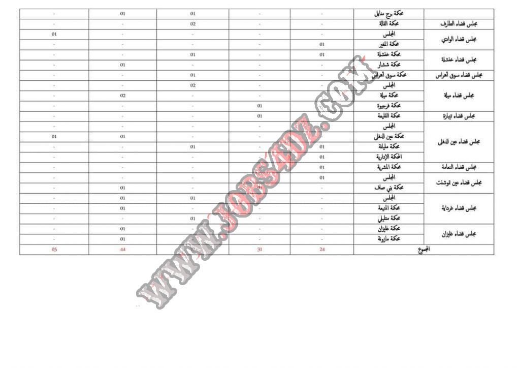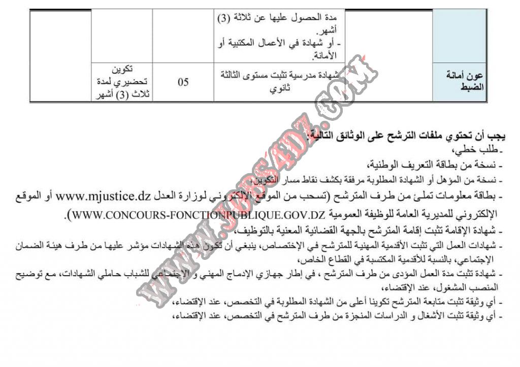 مسابقة وطنية تعلن وزارة العدل المديرية العامة للموارد البشرية عن تنظيم مسابقة توظيف على أساس الشهادات للإلتحاق برتب أسلاك أمانات الضبط و الأسلاك المشتركة و التقنية .حسب التفاصيل المذكورة في الاعلان
