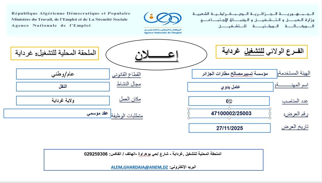 مدونة التوظيف في الجزائر اعلانات التوظيف والعمل في الجزائر 2025