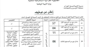 - اعلان عن توظيف عمال مهنيين في مختلف المستويات بمديرية التربية (164منصب)