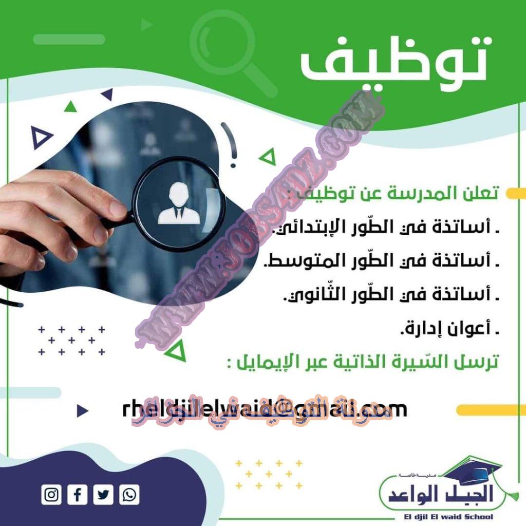 اعلان عن توظيف اساتذة واداريين بمدرسة الجيل الواعد بالجزائر العاصمة
