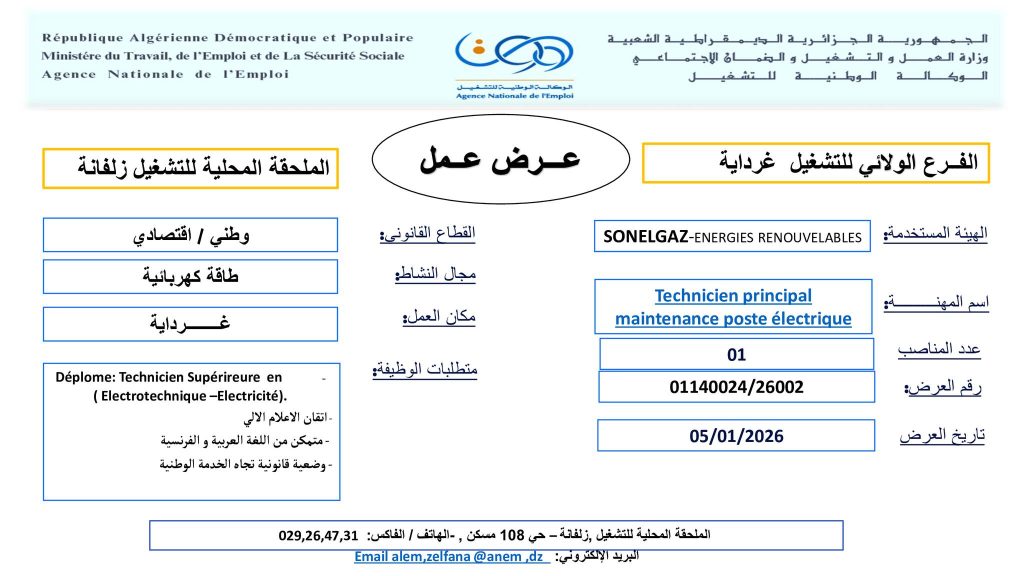 اسم المهنة: Technicien principal maintenance poste électrique