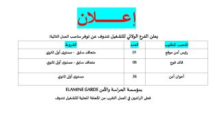 - الفرع الولائي للتشغيل يعلن عن توفر مناصب العمل التالية: