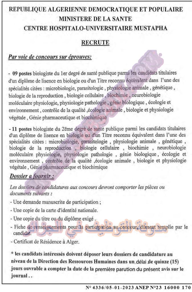 يعلن المركز الاستشفائي الجامعي مصطفى باشا عن فتح مسابقة توظيف في الرتب المبينة ادناه
