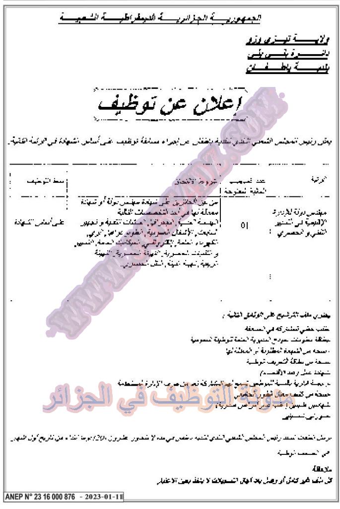 يعلن رئيس المجلس الشعبي البلدي لبلدية بلدية يطافن عن فتح مسابقة توظيف على اساس الشهادة في الرتب المبينة ادناه