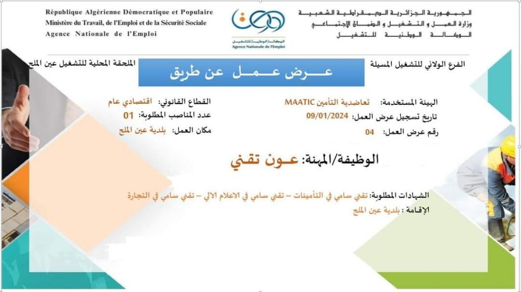 اعلان عن توظيف بتعاضدية التامين MAATIC شاركها Facebook Twitter LinkedIn Pinterest الفرع الولائي للتشغيـل