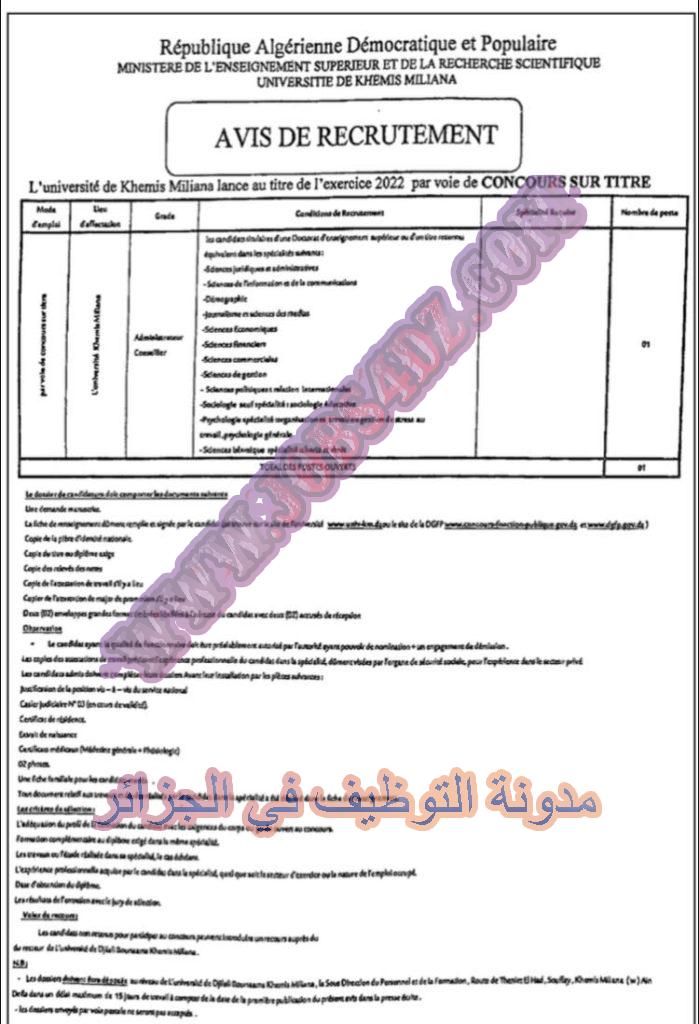 اعلان عن توظيف بجامعة الجيلالي بونعامة خميس مليانة