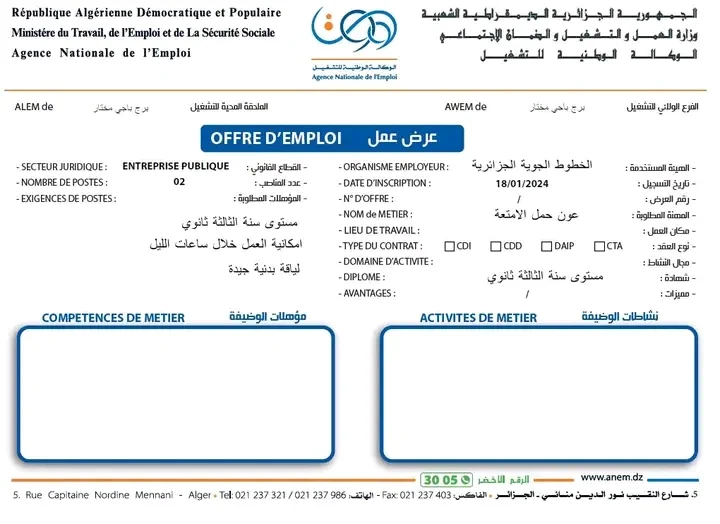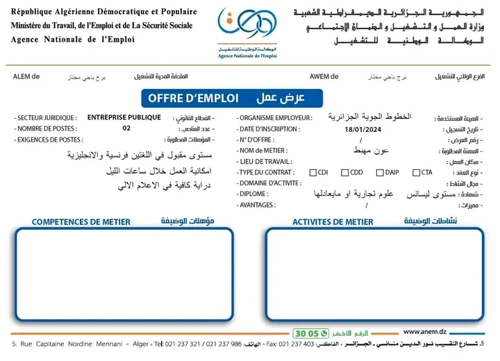 اعلان عن توظيف بشركة الخطوط الجوية الجزائرية AIR ALGÉRIE شاركها Facebook Twitter LinkedIn Pinterest الفرع الولائي للتشغيـل
