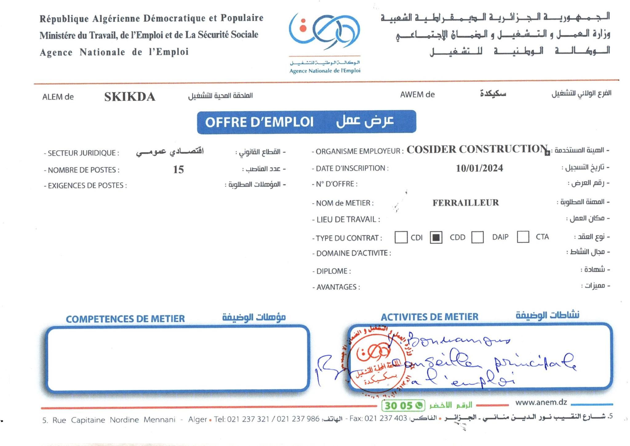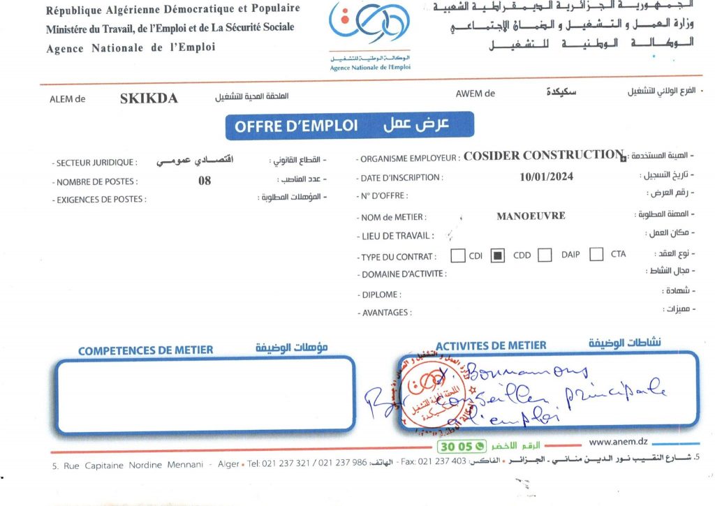 اعلان عن توظيف بشركة كوسيدار Cosider شاركها Facebook Twitter LinkedIn Pinterest الفرع الولائي للتشغيـل