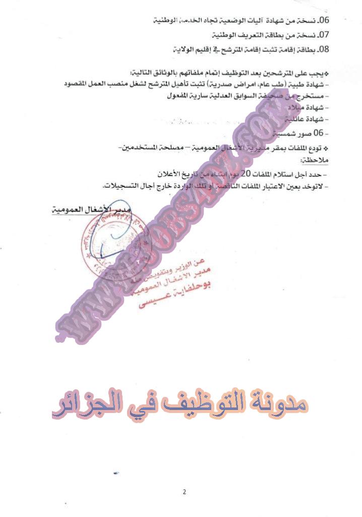 تعلن مديرية الاشغال العمومية لولاية عين صالح عن فتح توظيف على اساس الانتقاء في الرتب المبينة ادناه