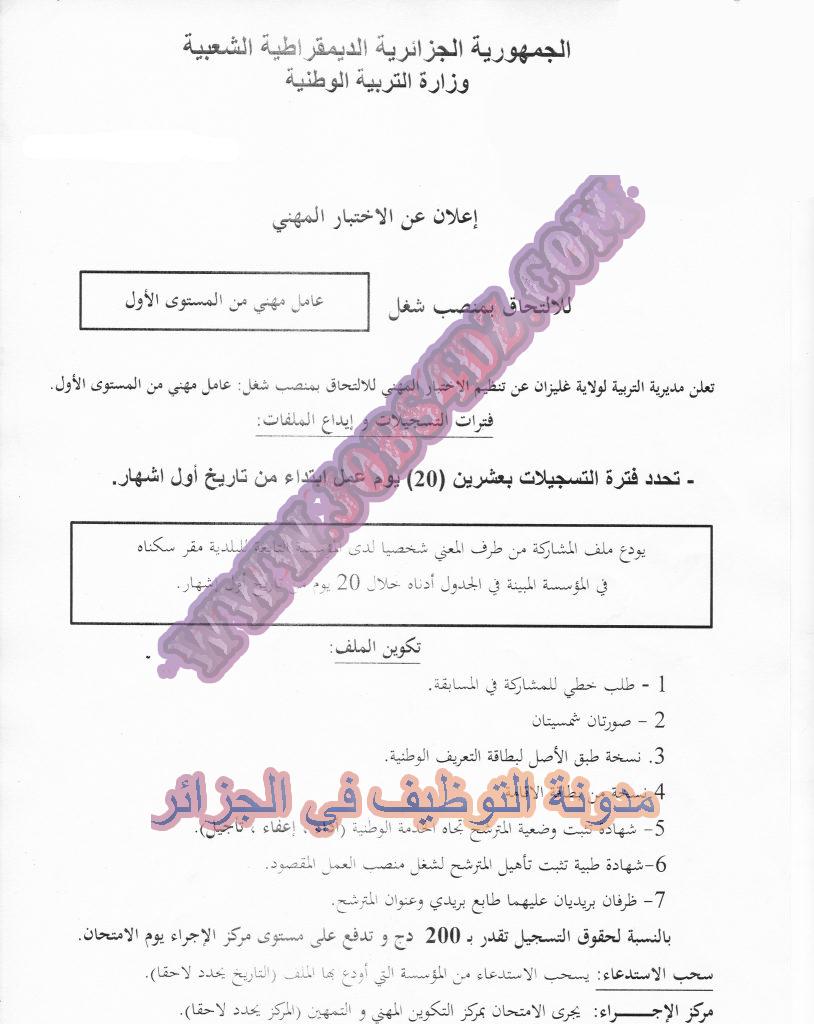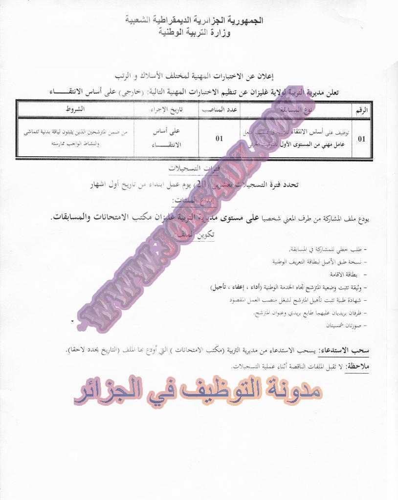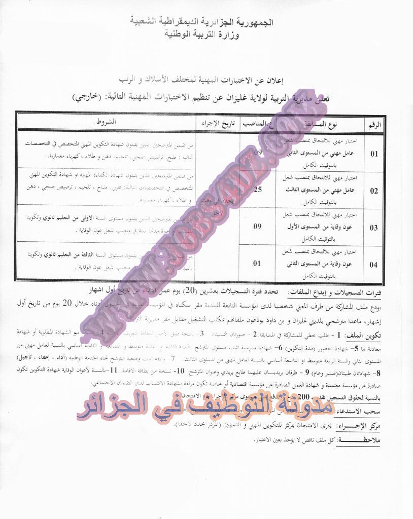 اعلان عن توظيف بمديرية التربية لولاية غليزان