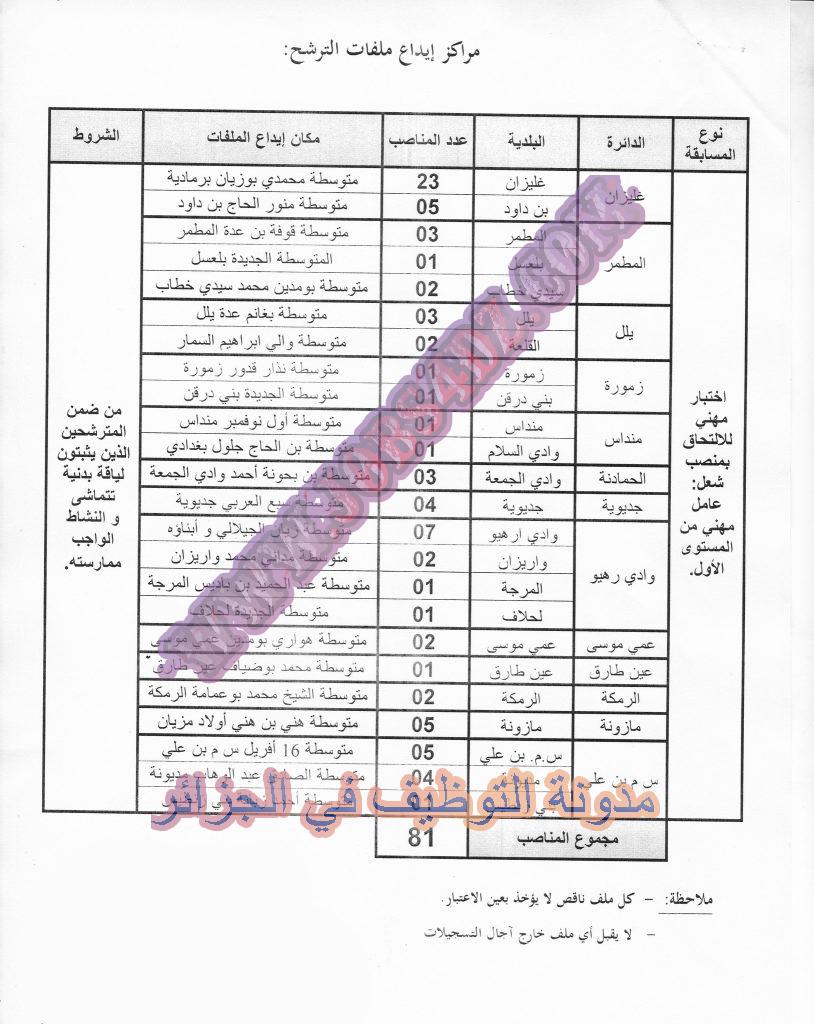 تعلن مديرية التربية لولاية غليزان عن فتح مسابقات توظيف على اساس الاختبار المهني في الرتب المبينة ادناه