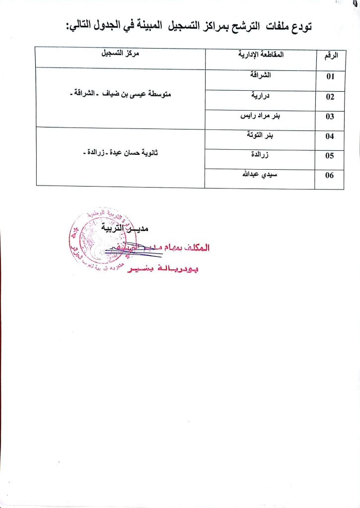 فترة إيداع الملفات : من 04 إلى 23 جانفي 2026 و من 05 إلى 24 جانفي 2026