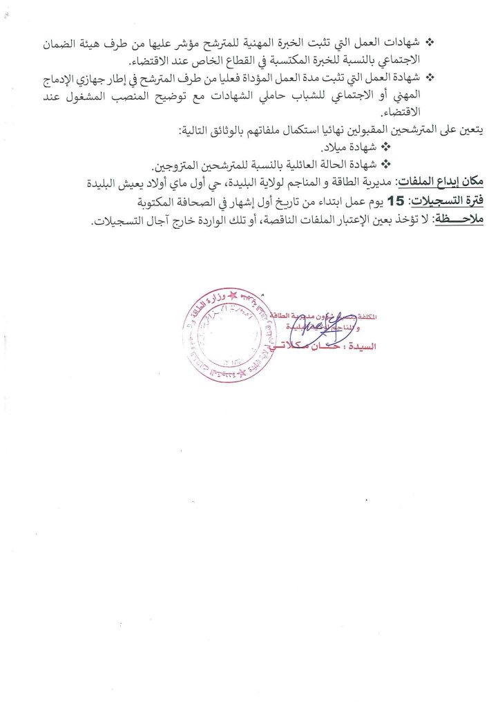اعلان عن توظيف بمديرية الطاقة والمناجم لولاية البليدة