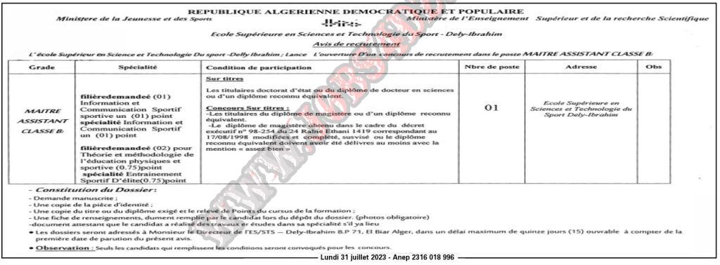 اخر اجل لايداع الملفات 15 يوم من تاريخ نشر الاعلان