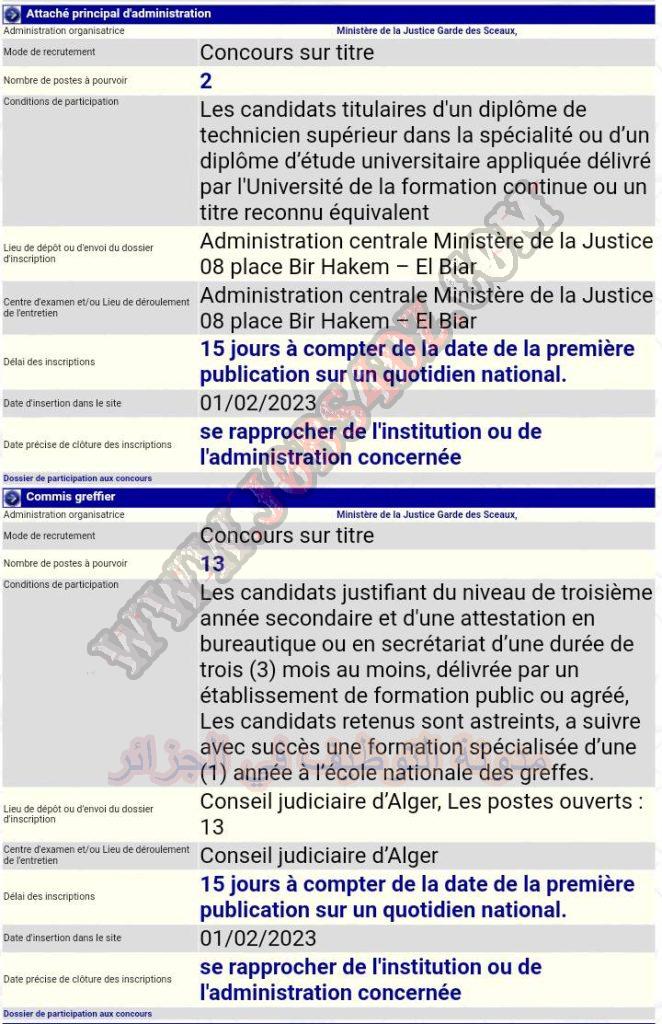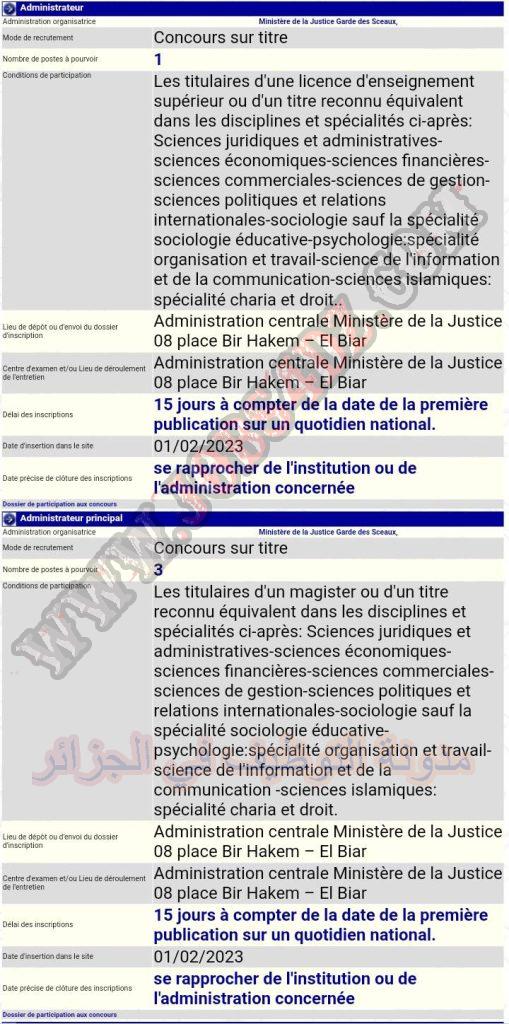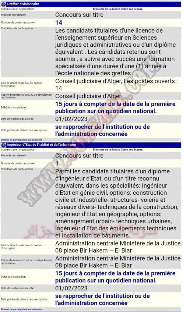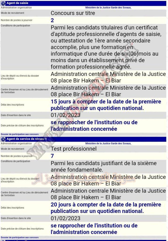 تعلن وزارة العدل حافظ الاختام عن فتح مسابقة توظيف بعنوان سنة 2023 على اساس الشهادة في المناصب المبينة ادناه: