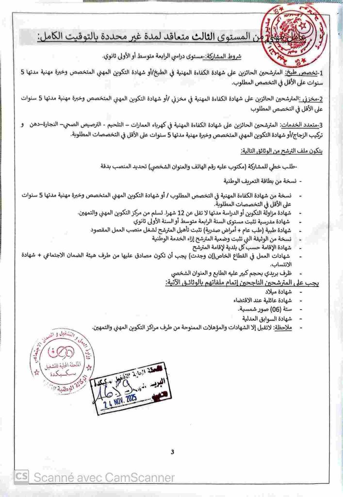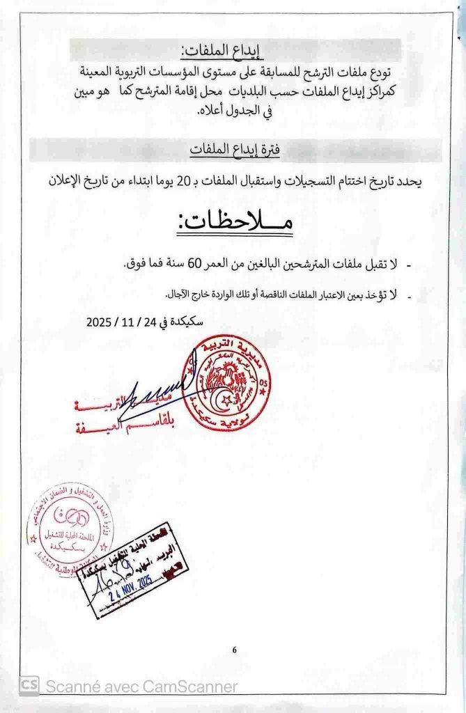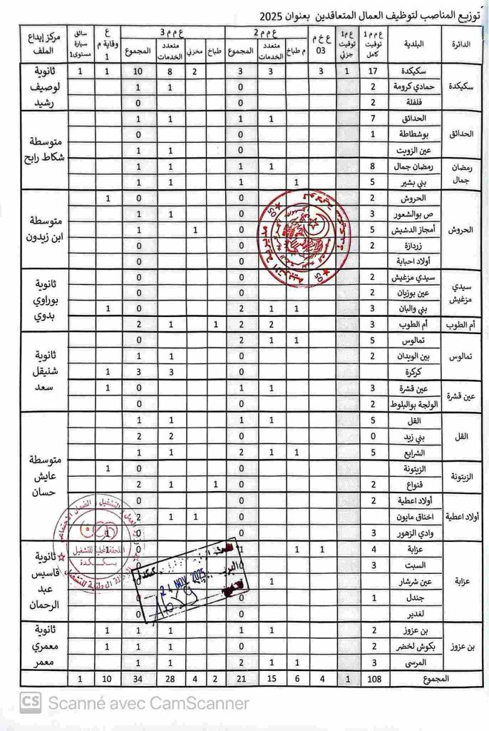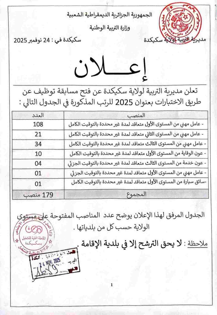 تعلن مديرية التربية لولاية سكيكدة عن فتح مسابقة توظيف عن طريق الاختبارات بعنوان 2025 للرتب المذكورة في الجدول التالي :