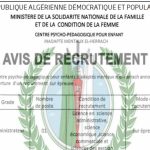 - اعلان عن مسابقة توظيف بالمركز النفسي البيداغوجي للأطفال المعوقين ذهنياً بالحراش الجزائر العاصمة