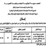 الجدول المرفق لهذا الإعلان يوضح عدد المناصب المفتوحة على مستوى الولاية حسب كل من بلدياتها.