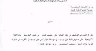 - اعلان عن التوظيف في إطار التعاقد بمديرية التربية لولاية المدية