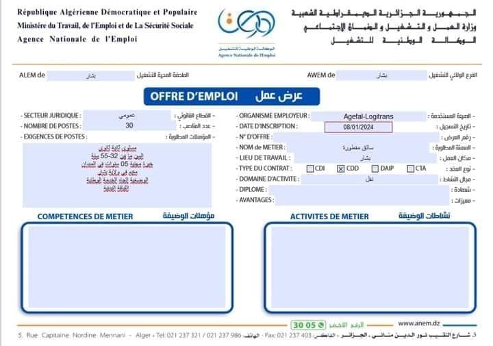 اعلان عن توظيف 30 سائق مقطورة بمؤسسسة Agefal logitrans شاركها Facebook Twitter LinkedIn Pinterest الفرع الولائي للتشغيـل