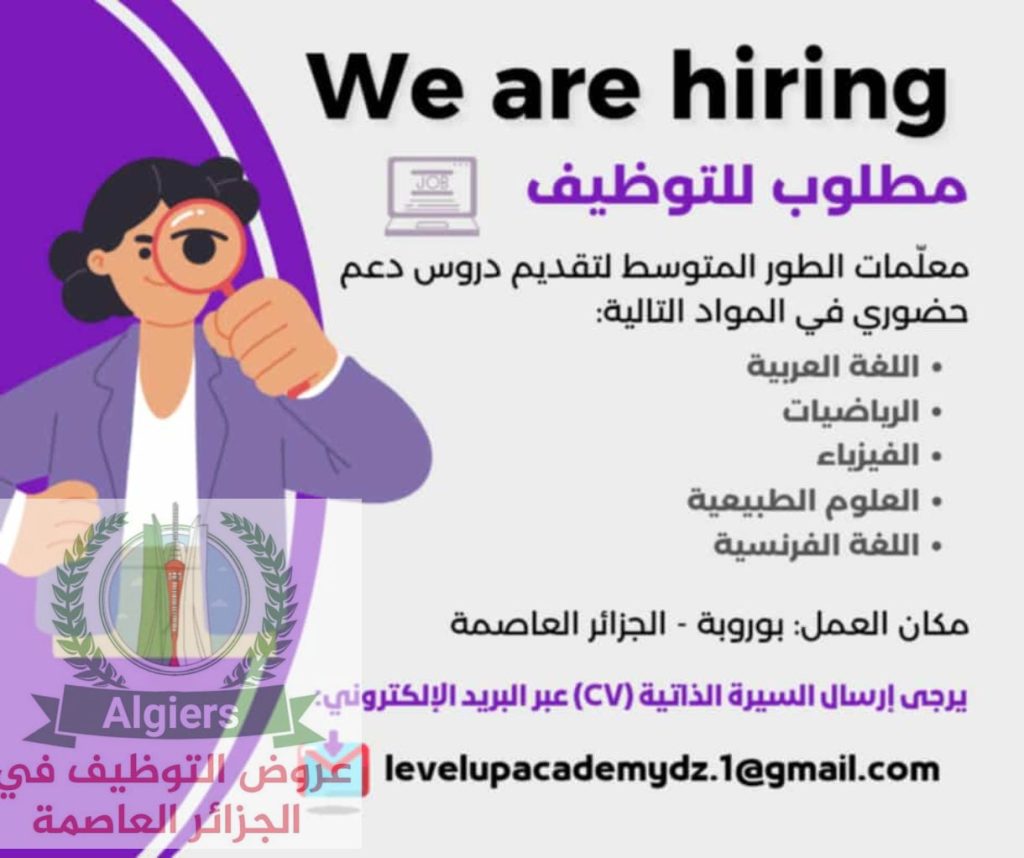 تعلن أكاديمية عن فتح باب التوظيف لمعلّمات الطور المتوسط لتقديم دروس دعم حضوري في المواد التالية: