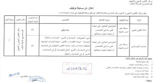 - فتح مسابقة لتوظيف أساتذة وإداريين مختلف التخصصات بوزارة التكوين المهني في العديد من الولايات
