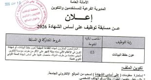 - مديرية التربية تفتح باب التوظيف في إطار التعاقد على المناصب الشاغرة في الأطوار التعليمية الثلاث